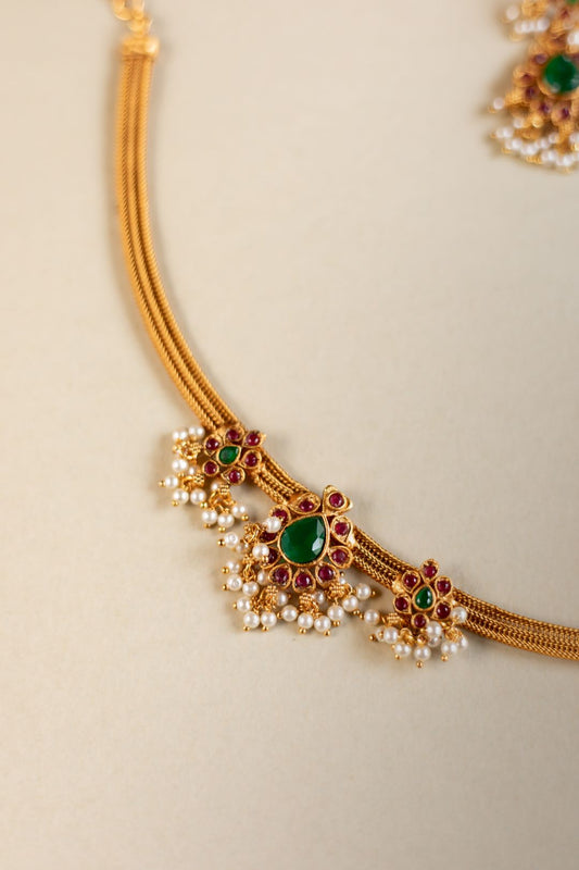 Gold Finish Pearl Beads dainty high neck chocker-14 B