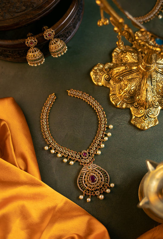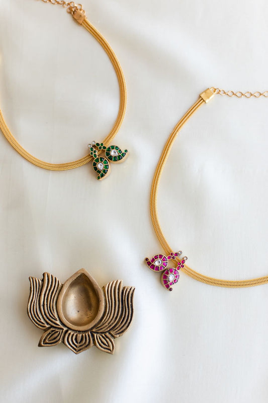 Gold Finish Chain Dual Side Attigai Necklace -12