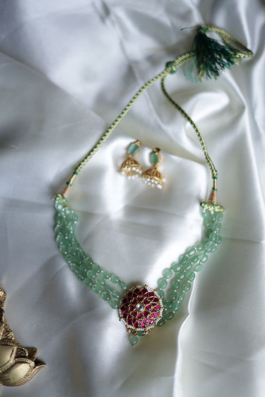 S type Tiny AD Sequence flower Necklace & jhumkas