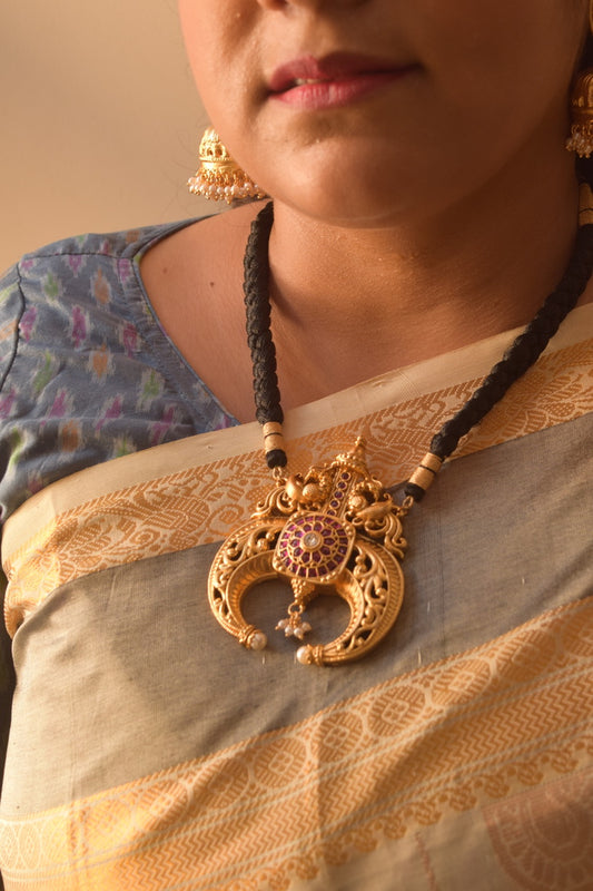 Gold Finish Twin Peacock Carving- Moon Vintage Pendant