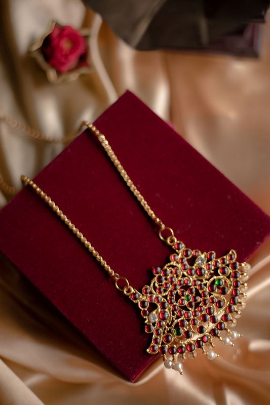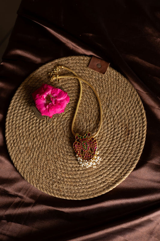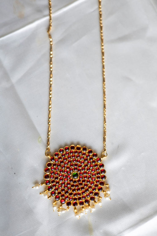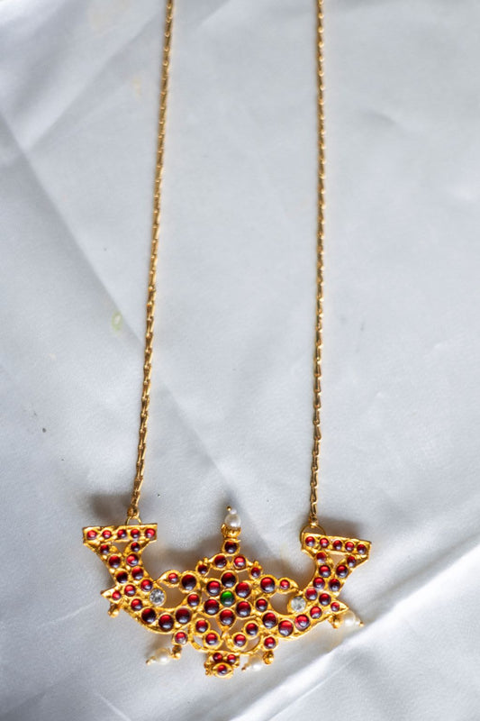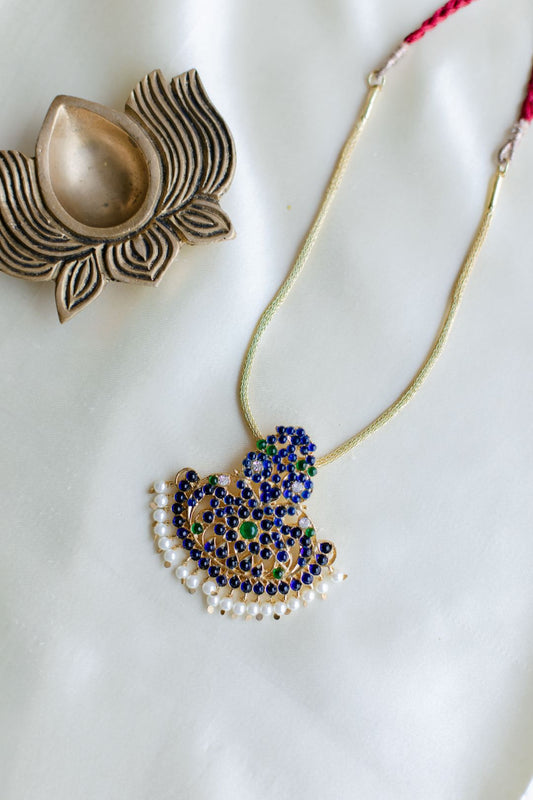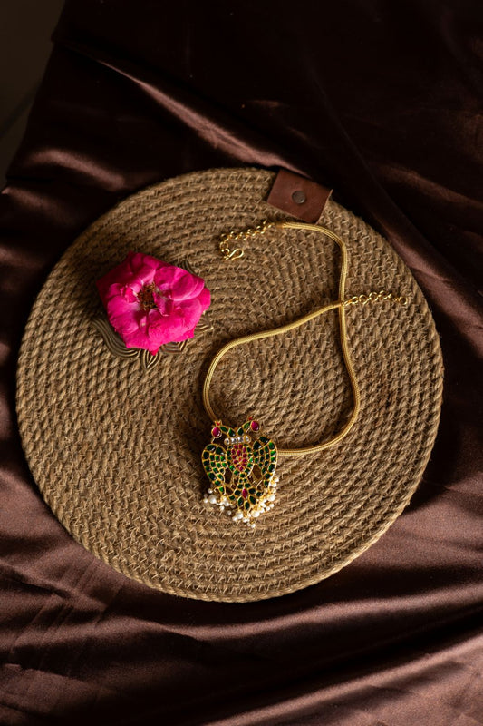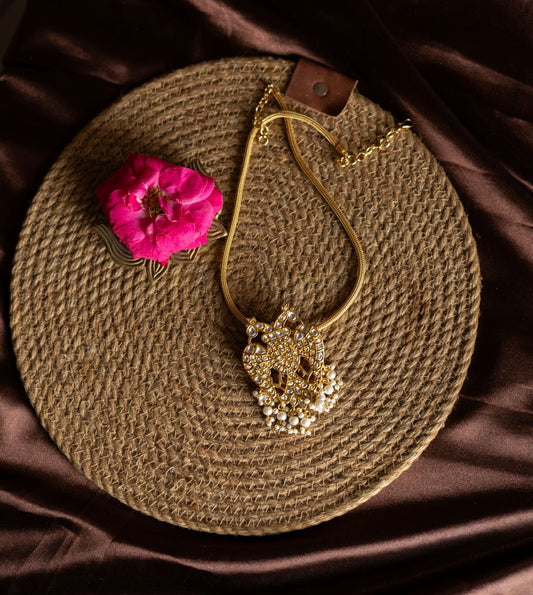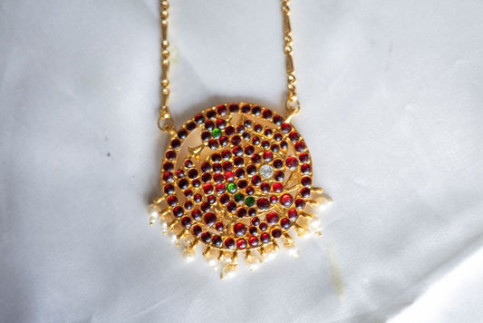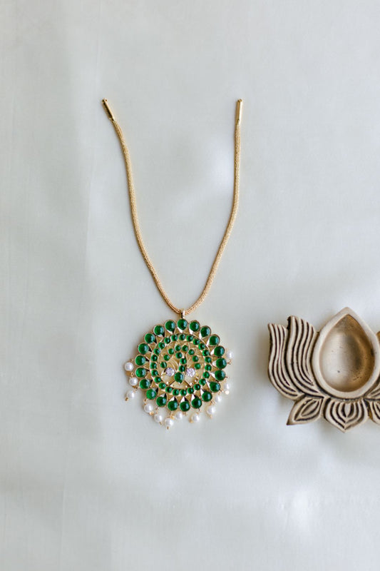 Semi Precious Kemp - Gold Finish Chain Jumbo Peacock pendant without Jhumka #6