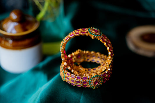 Matte Finish 3 layer ruby with flower mugappu KADA bangle #7A