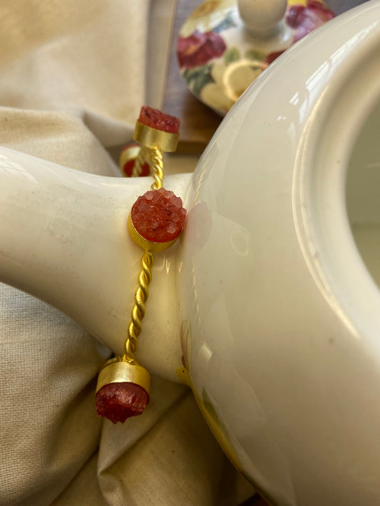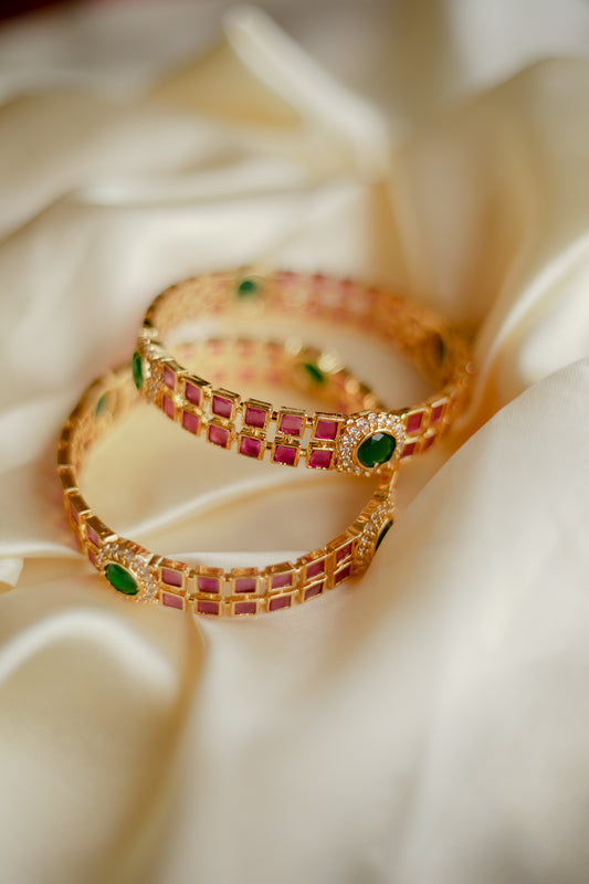 Matte Finish 2 layer square Ruby stone with flower mugappu bangle #9B