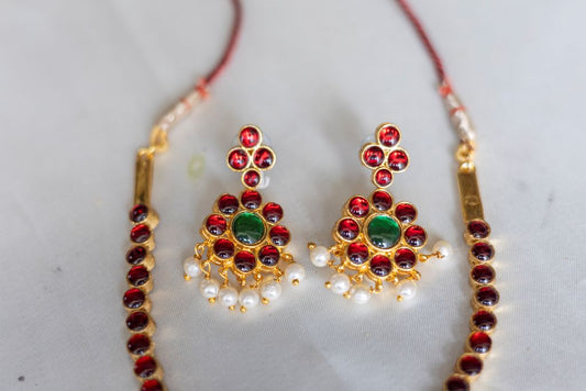 Imitation kemp- Gold finish addigai model flower pendant red and green#38A