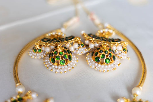 imitation Kemp- 3 pirai pendant green with jhumka -39