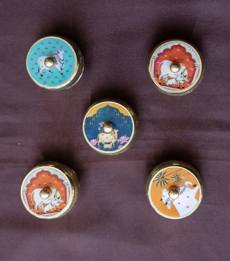 Handpainted pichwai kumkum box (Set of 5)